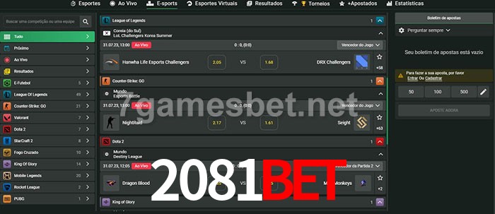 A aposta 2081Bet oferece aos jogadores a experiência mais conveniente de apostas em eSports!